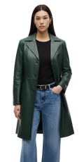 Command the Room in the Women’s Green Nappa Leather Trench Coat